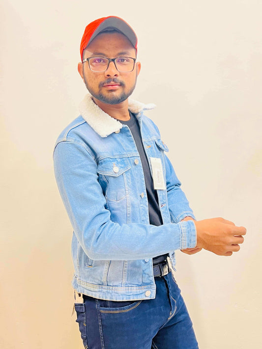 Sky Blue White Color Fur Denim Jacket