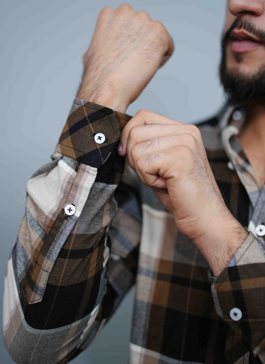 White & Brown Casual Check Button Down Shirt