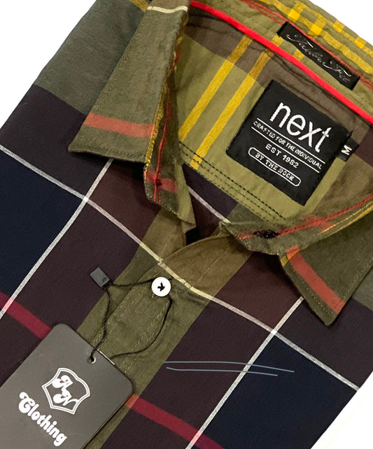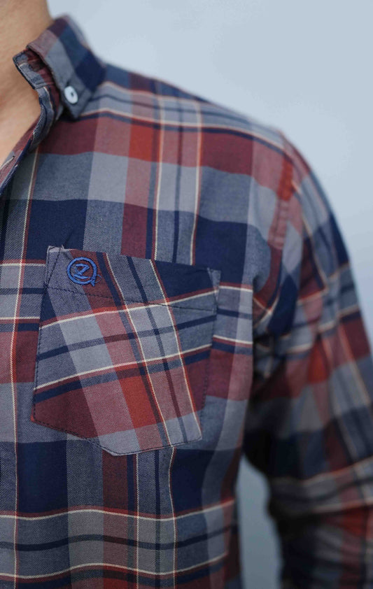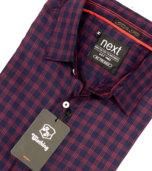 Navy & Maroon Check Button Down Shirts