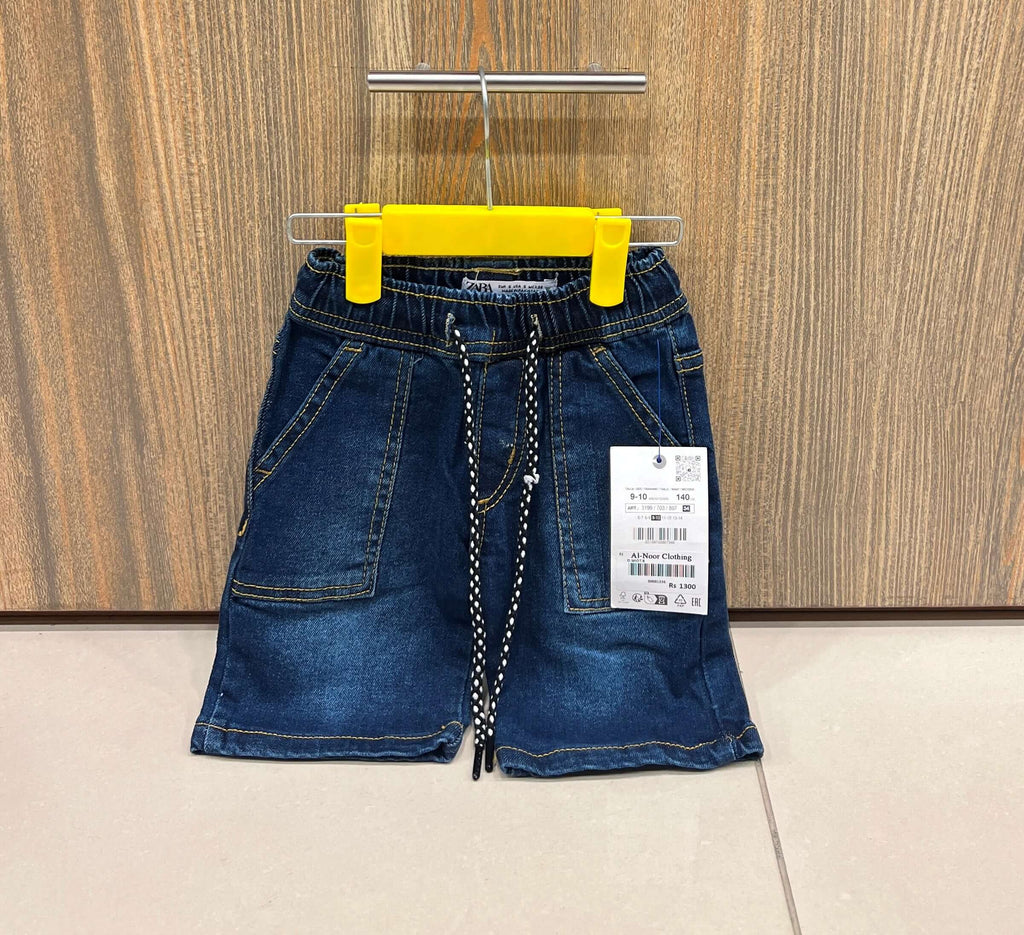 Boys' denim shorts are ideal for active play or informal outings because they are fashionable and multipurpose. Made from strong denim, they have adjustable waistbands, pockets, and strong stitching for a comfortable fit. These shorts are a staple in any boy's collection because they look great with so many different types of tops.