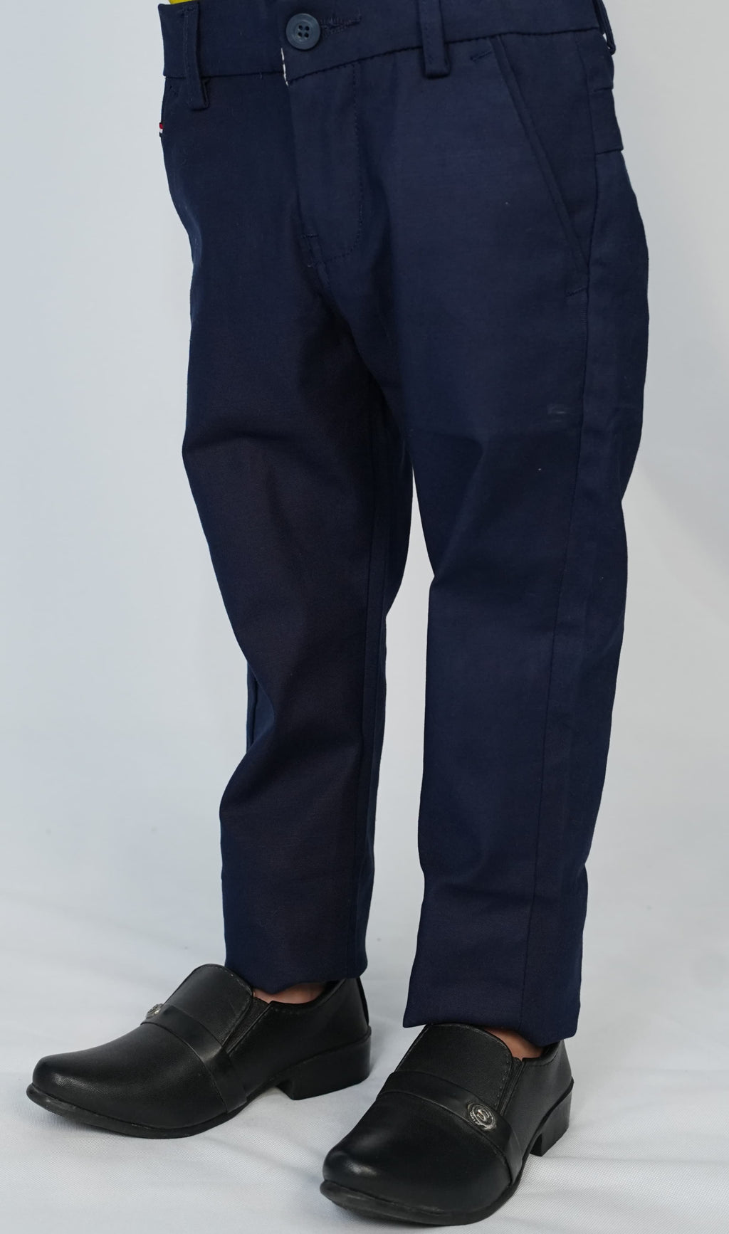 Elevate the Lifestyle of Your Cute one with our premium trendy Navy Blue Cotton Chino Pant made with cotton fabric essential for both season stitched with premium level of stitching and zips.